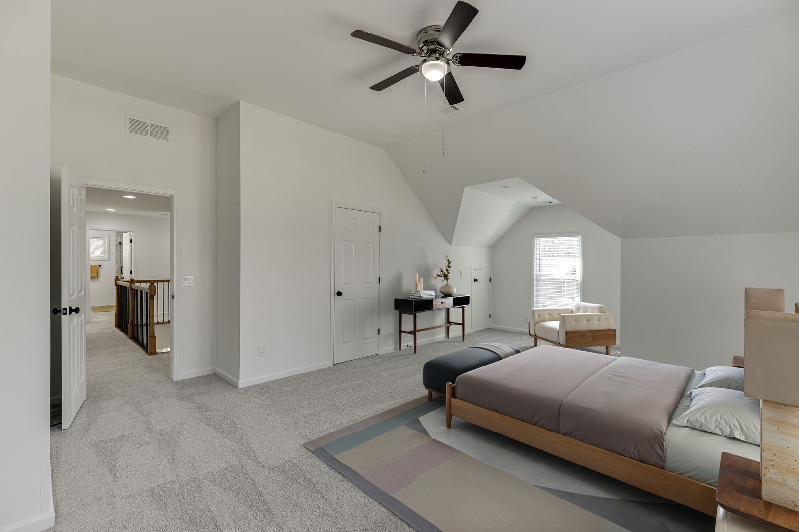 This spacious home offers a versatile layout with one bedroom and a fully renovated full bath conveniently located on the main floor—perfect for guests or a home office. The interior has been freshly painted throughout, featuring refinished hardwood floors on the main level and brand-new carpeting upstairs.