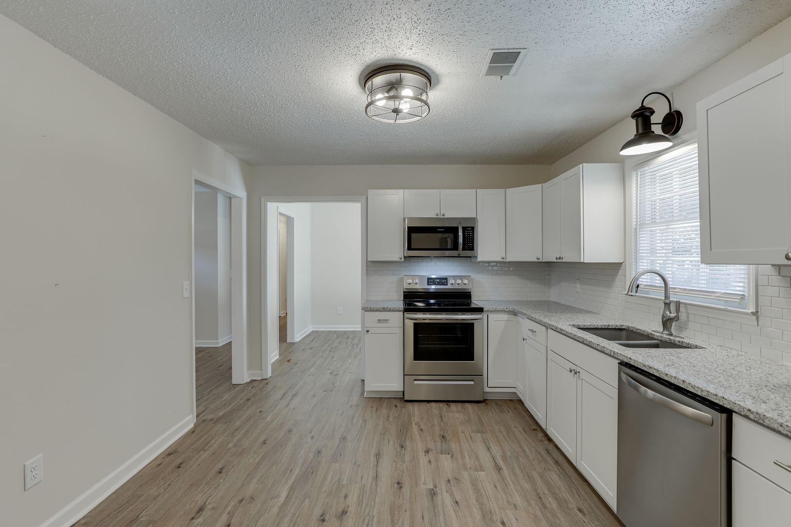 This well-maintained single-family ranch home offers comfort and style throughout. The spacious, previously renovated eat-in kitchen features crisp white cabinetry, stainless steel appliances, and plenty of room for dining and entertaining. The home includes a mix of plush carpet and luxury vinyl flooring for both comfort and durability.