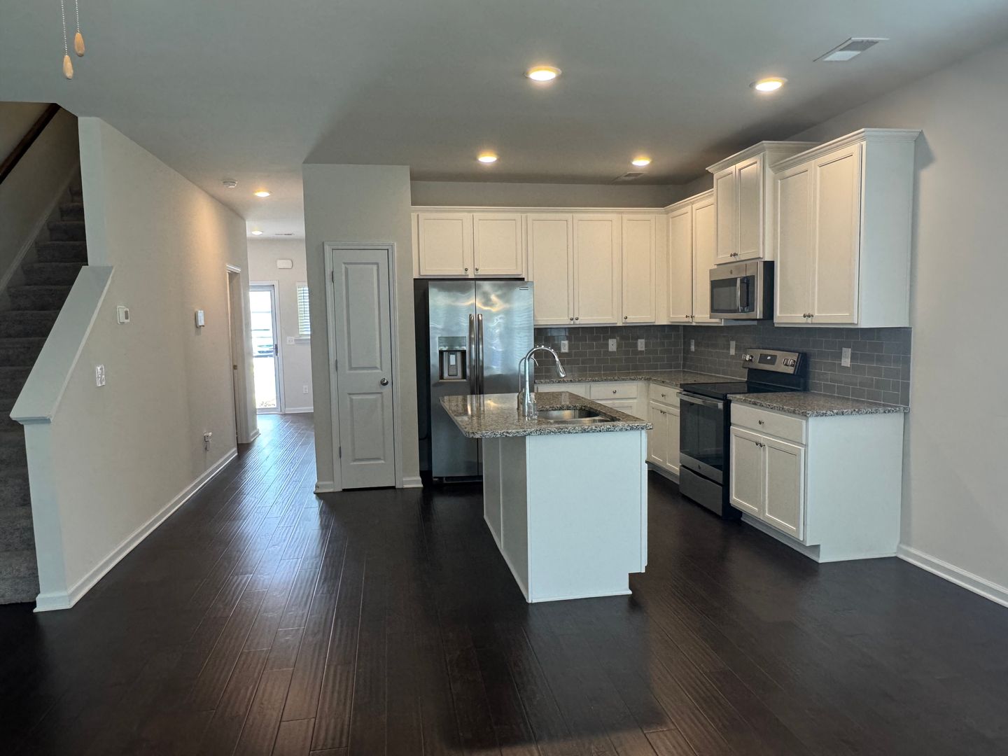 This gorgeous end-unit townhouse is a rare find! Featuring gleaming hardwood floors and soaring ceilings on the main level, this home offers both style and comfort. The modern kitchen is a chef’s dream with sleek 42” cabinets, granite countertops, a spacious island, and a bright breakfast area that flows seamlessly into the cozy family room—perfect for relaxing or entertaining.