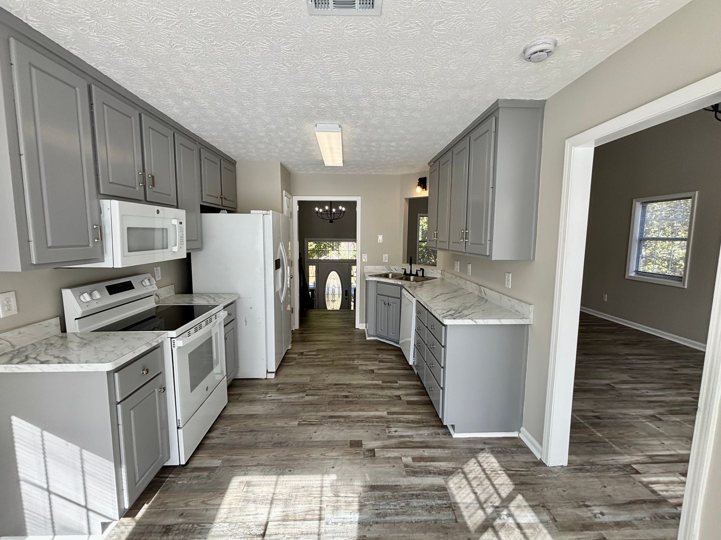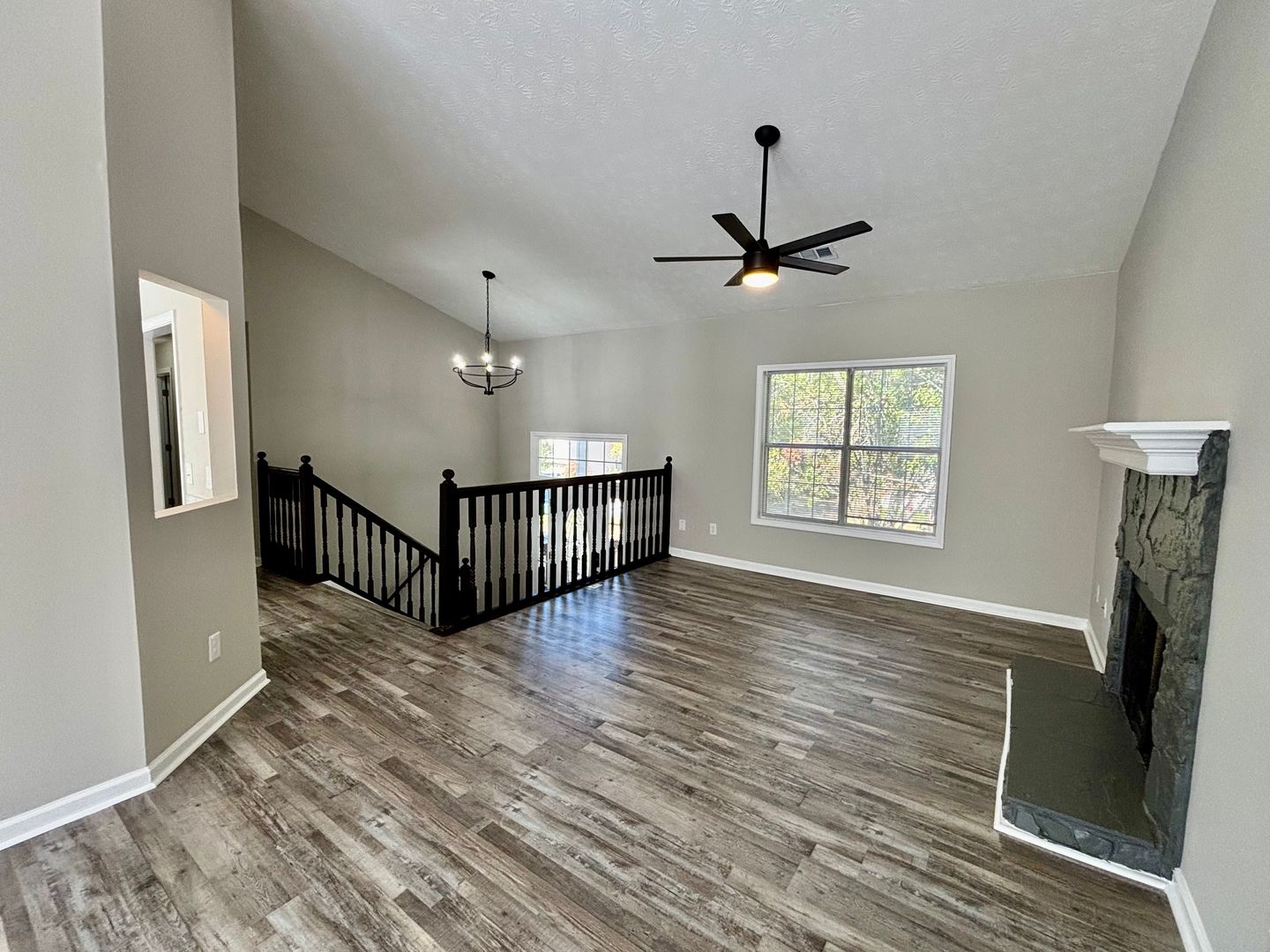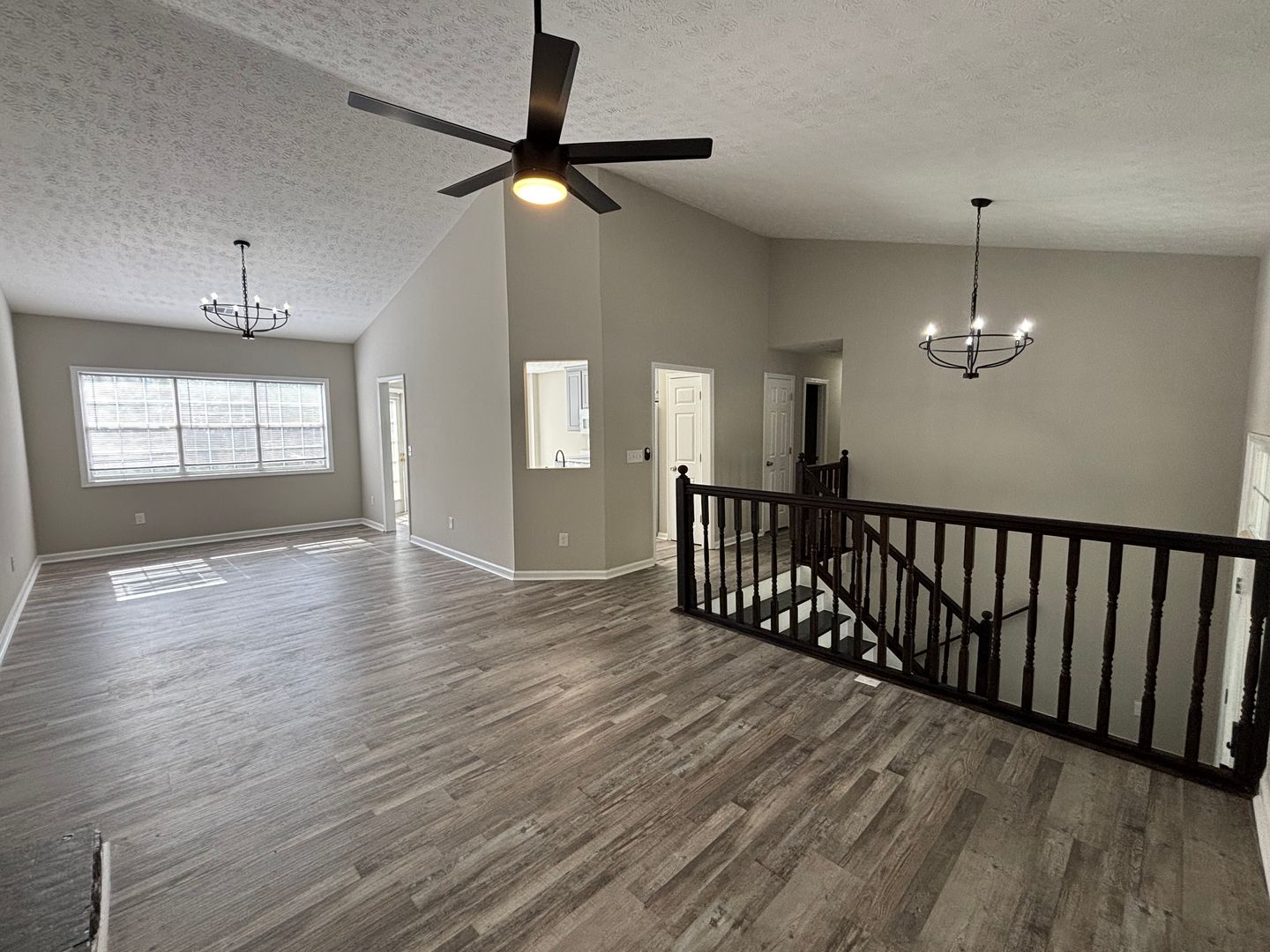 Enjoy comfort and convenience in this spacious single-family home featuring an open great room and dining area with vaulted ceilings, a cozy fireplace, and charming bay windows. The bright breakfast room and ceiling fans throughout the home add to its welcoming feel.