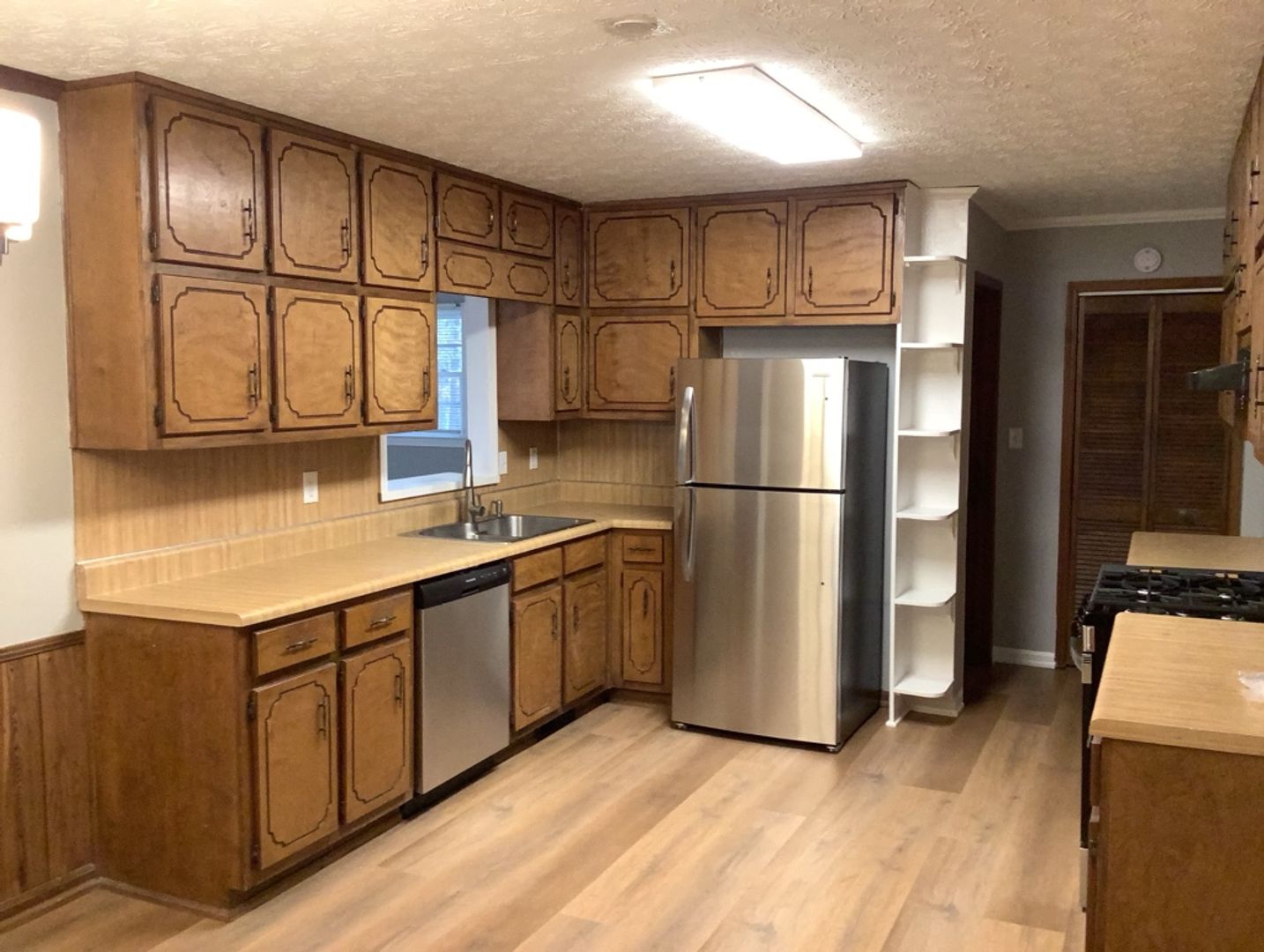 Welcome home to this beautifully remodeled 3-bedroom, 2-bathroom gem featuring fresh paint, new carpet, updated lighting, and all-new vanities and countertops throughout. The spacious living room offers a cozy wood-burning fireplace, perfect for relaxing evenings, and flows into a bright eat-in kitchen with brand-new appliances.