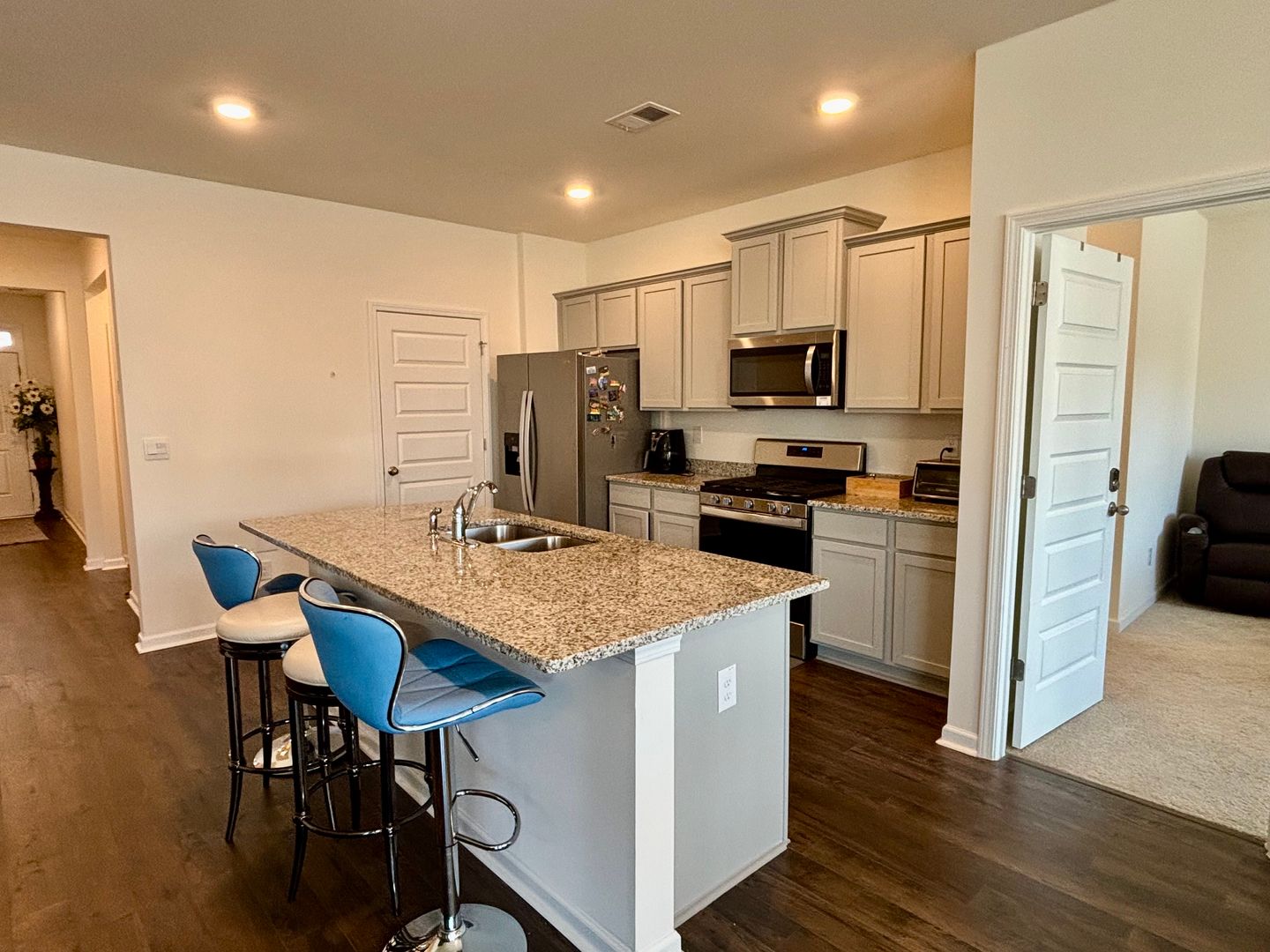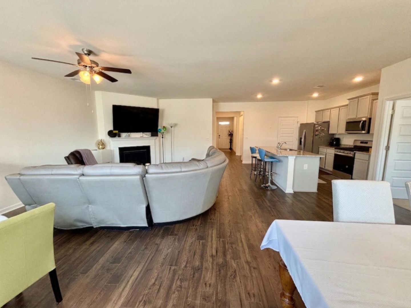 The spacious kitchen seamlessly flows into the family room, complete with a cozy fireplace and a casual dining area, creating a warm and functional gathering space. The private primary suite provides a relaxing retreat, featuring a spa-like bathroom designed for comfort and convenience.