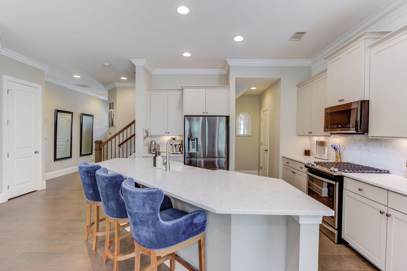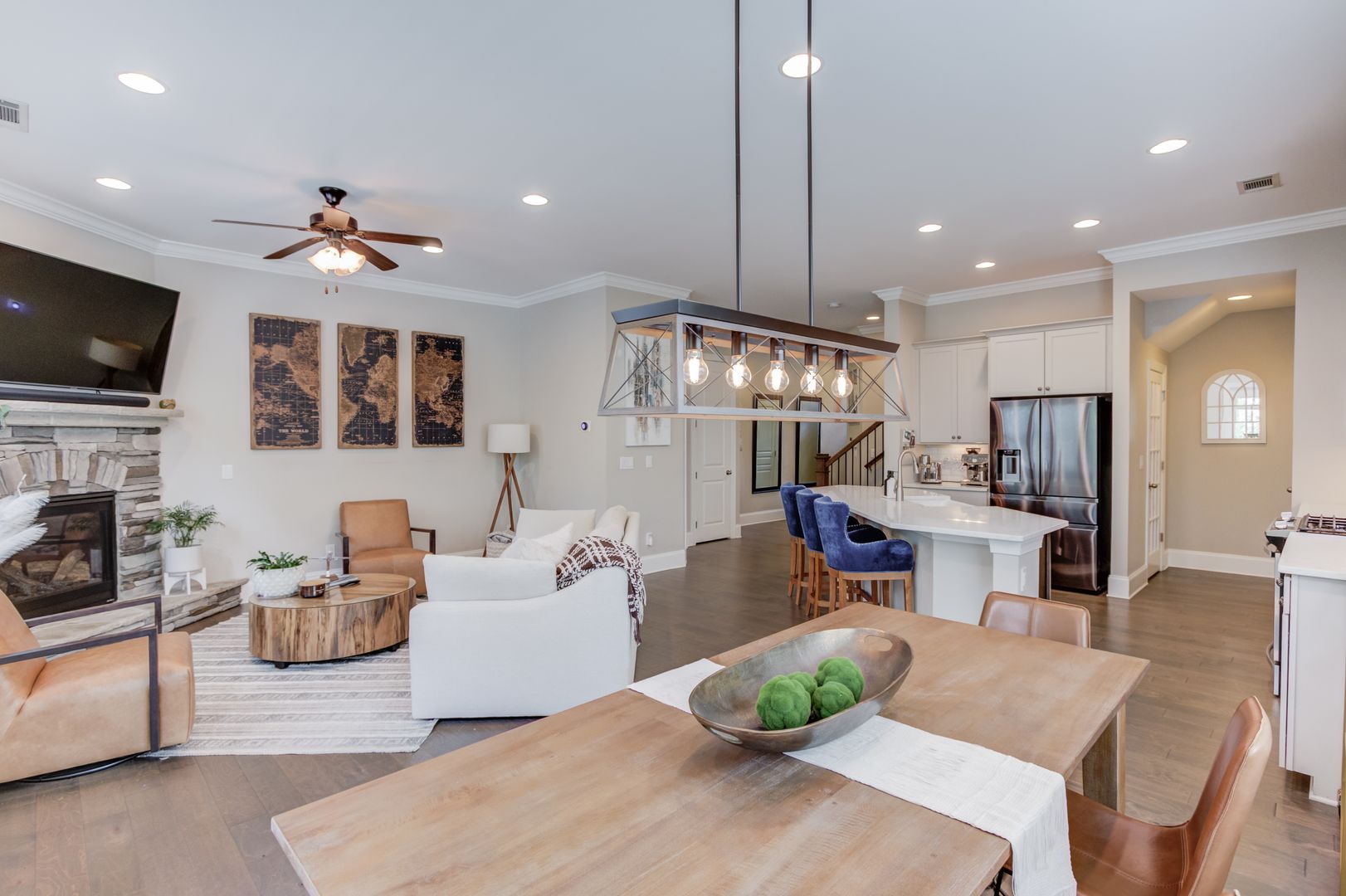The main level boasts an open-concept floor plan with a gourmet kitchen featuring quartz countertops, stainless steel appliances, and a large island—perfect for entertaining. The dining area flows seamlessly into the living room, complete with a cozy fireplace and access to a private deck with built-in gas grill.