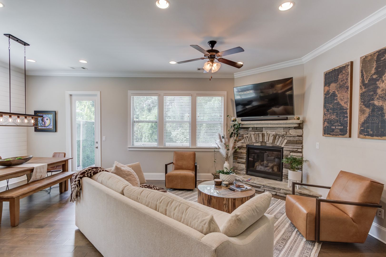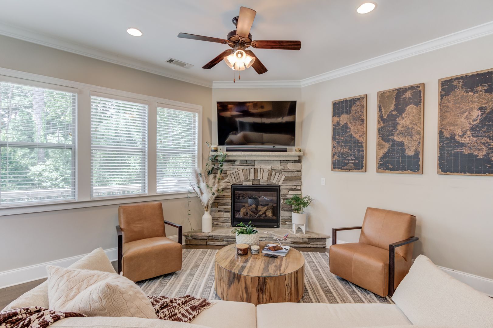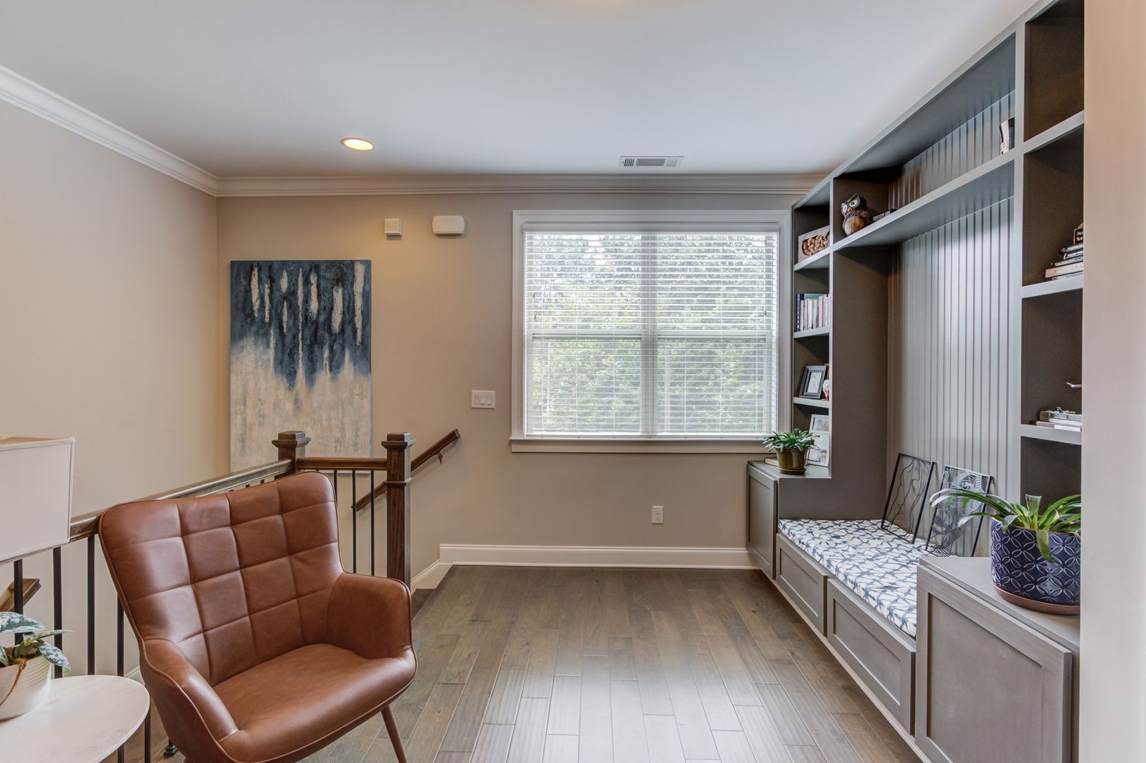 Upstairs, the luxurious Primary Suite includes a custom walk-in closet and an oversized shower. Two additional bedrooms share a full bath, and a versatile reading nook or flex space adds charm to the upper level. The laundry closet is conveniently located here as well.