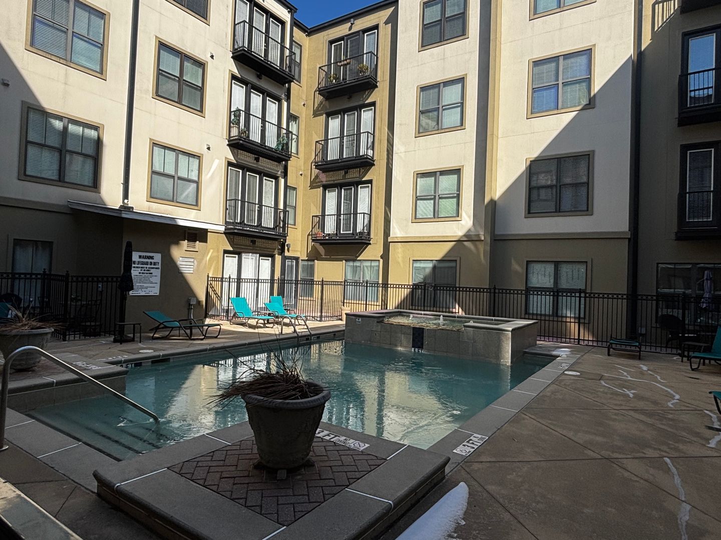 Enjoy resort-style amenities including a swimming pool, covered parking, modern fitness center, rooftop access with tennis courts, café with billiards table, and three beautifully landscaped interior courtyards with water features. On-site management company for added convenience.