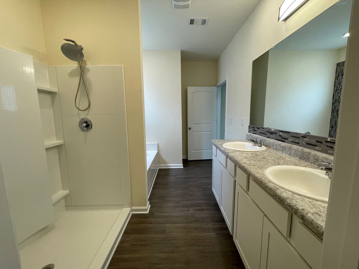 The primary suite is a true retreat with a walk-in closet, dual vanities, a soaking tub, and a separate shower. The three additional bedrooms offer flexible space for guest rooms or whatever suits your lifestyle.