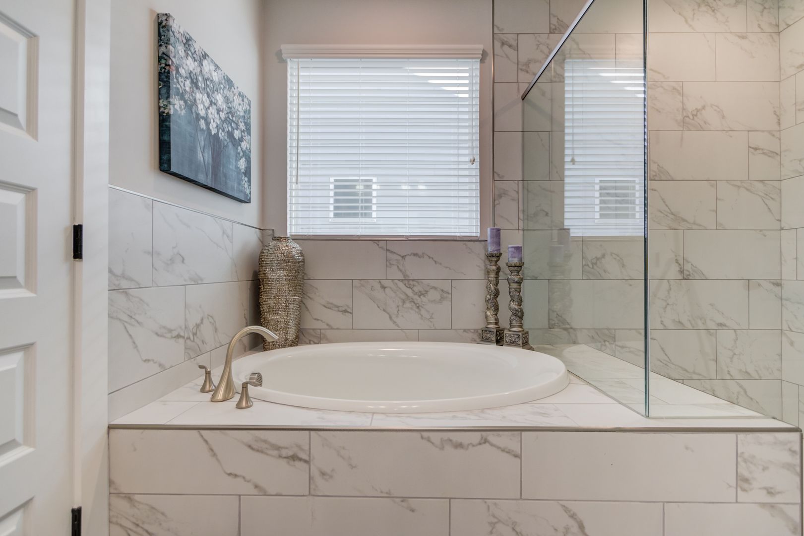 The owner’s suite on the main level is a true retreat, showcasing a tray ceiling and a spa-inspired bathroom with double vanities, a soaking tub, separate shower, and a spacious walk-in closet. Upstairs, you’ll find a cozy loft, two generously sized secondary bedrooms, and a full bath.