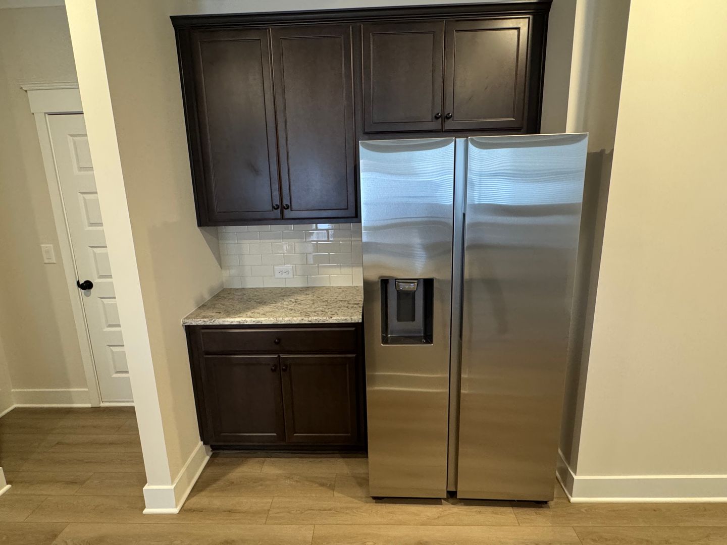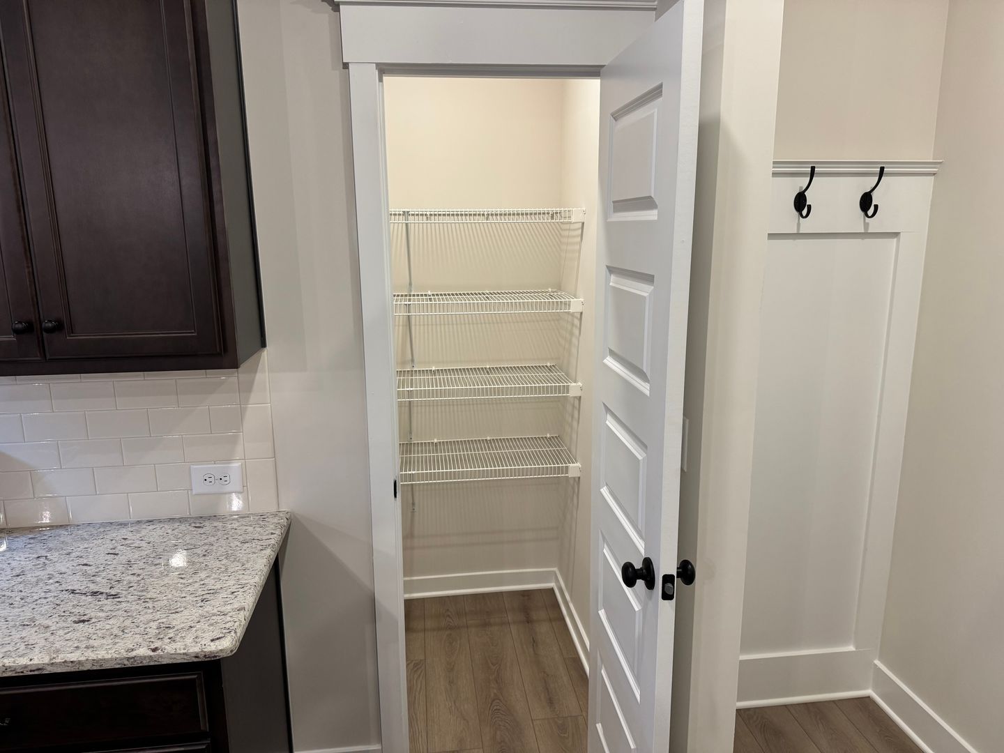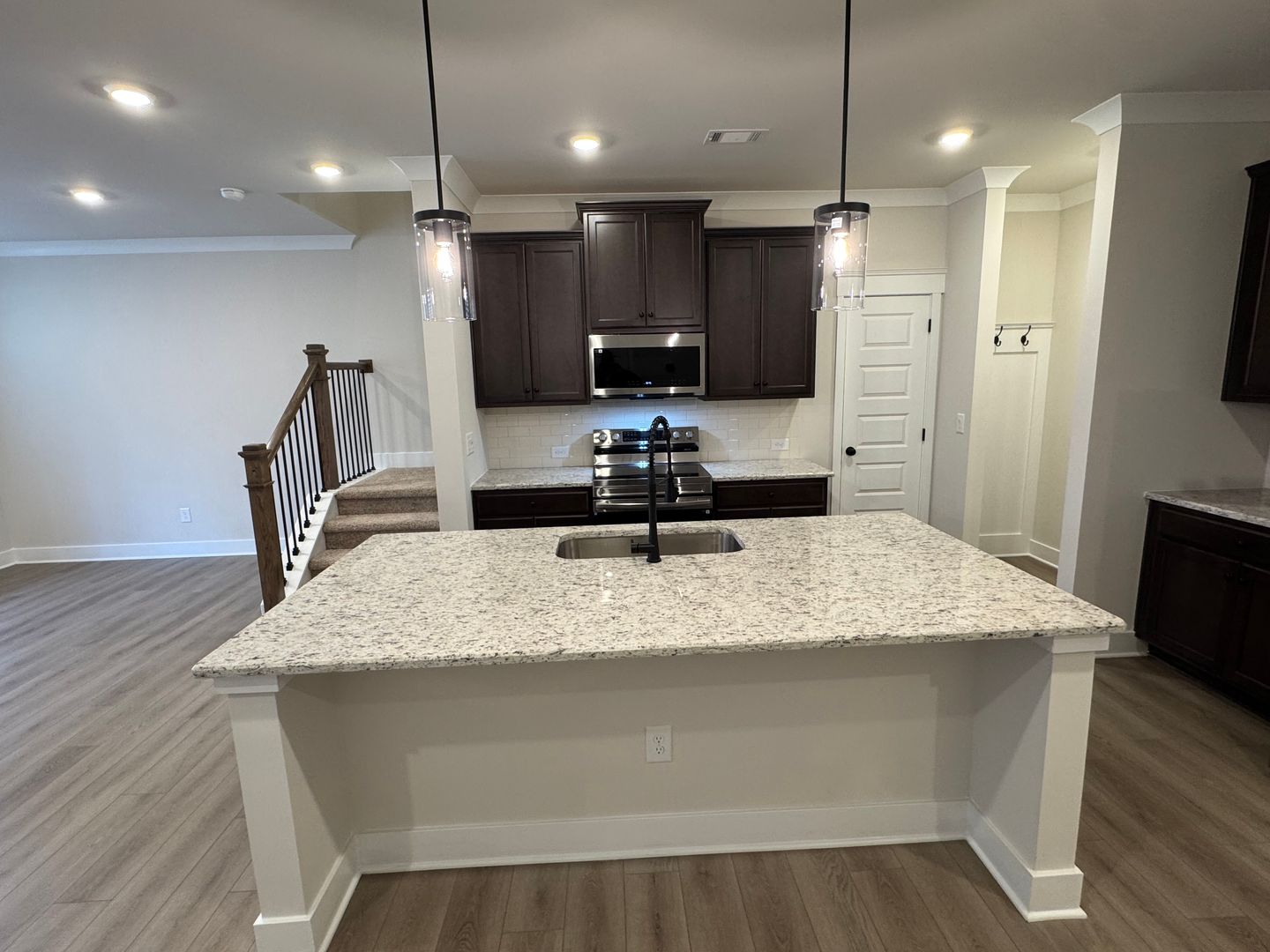 The main level welcomes you with a bright foyer that leads into an open-concept layout. Enjoy a spacious great room and a modern kitchen complete with 42" cabinets, tile backsplash, a large center island with barstool seating, pendant lighting, stainless steel appliances, and a walk-in pantry. A mudroom off the garage offers a convenient everyday drop zone.