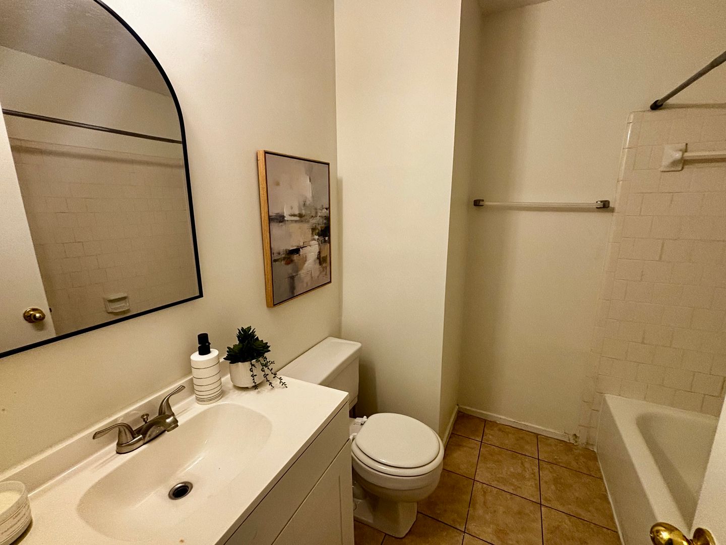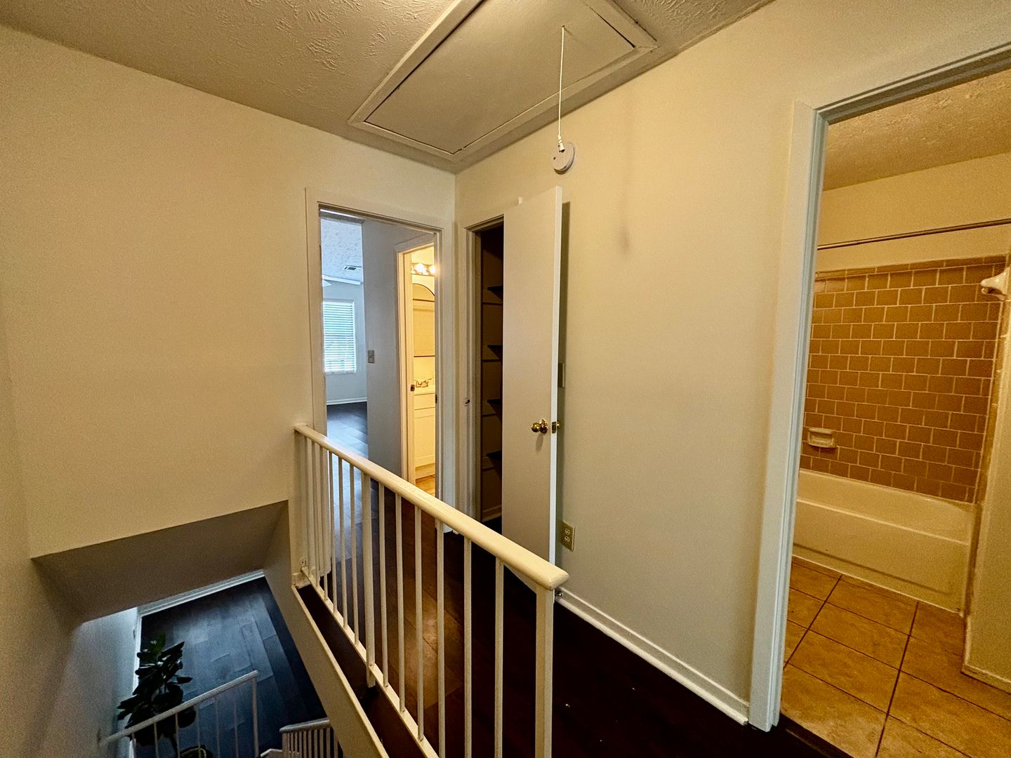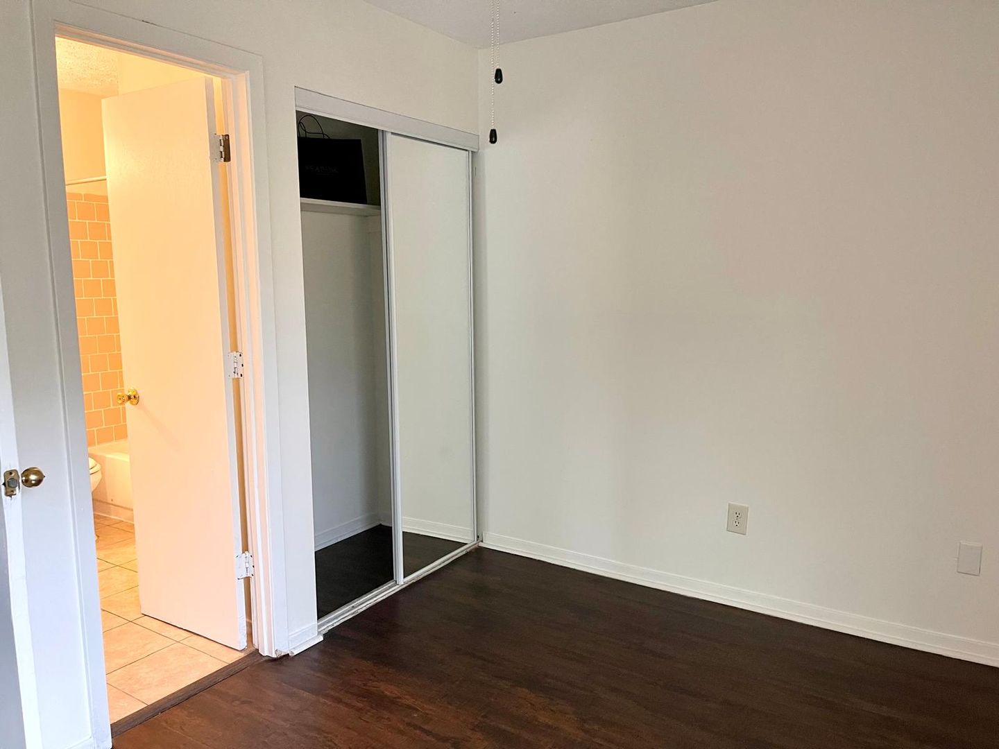 The eat-in kitchen offers brand-new stainless steel appliances, including a gas range, dishwasher, and refrigerator, and flows seamlessly into the main living space. A convenient laundry closet in the hallway adds everyday ease.