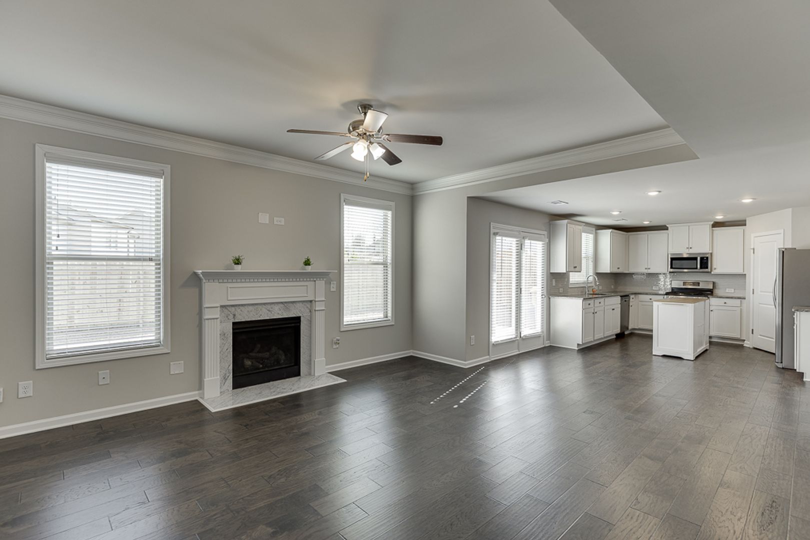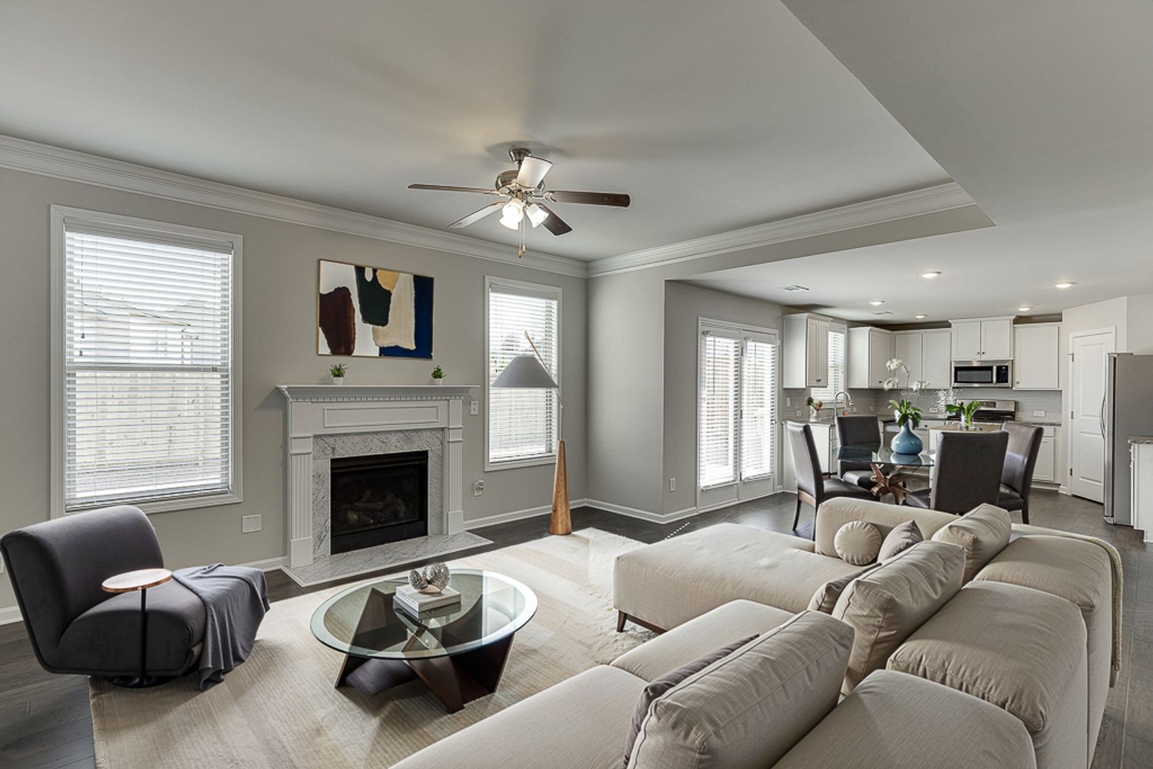 The home has been freshly painted throughout, creating a bright, clean, and move-in-ready feel. Inside, you’ll find an open floor plan with fresh neutral finishes. The eat-in kitchen features granite countertops, stainless steel appliances, and ample cabinet space, flowing seamlessly into the inviting living room with a cozy fireplace. A separate dining room provides flexibility for entertaining or everyday use.