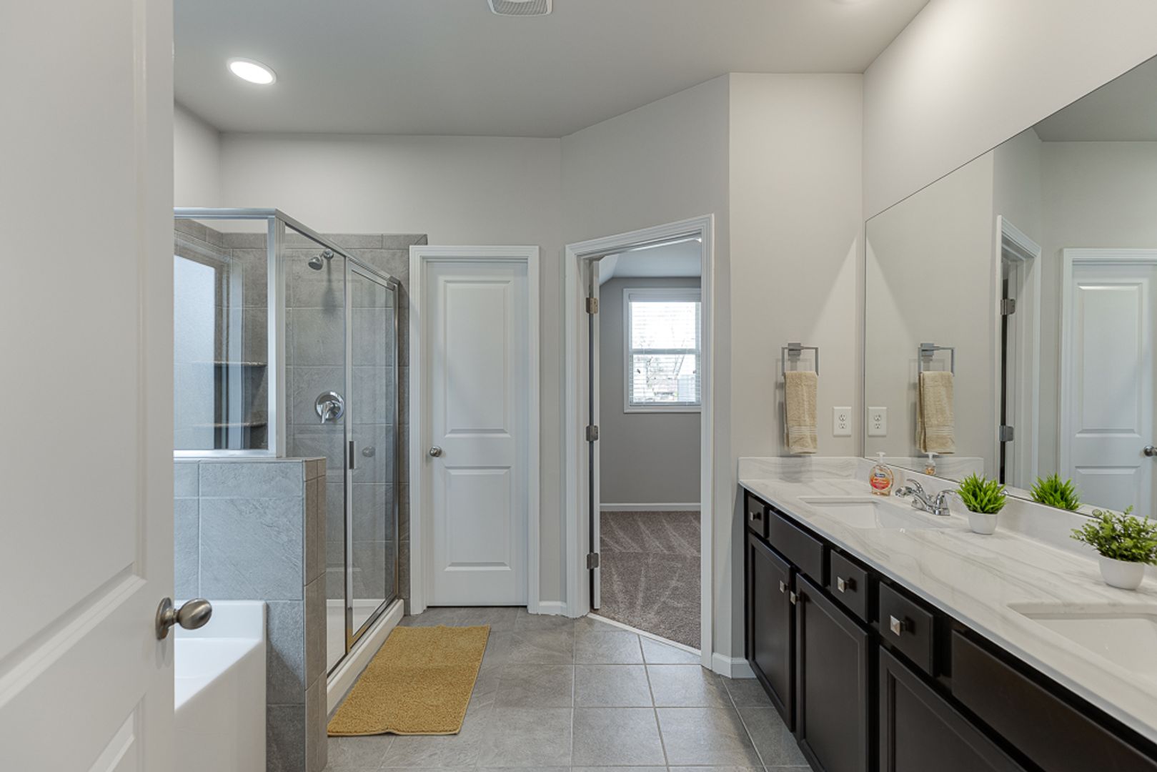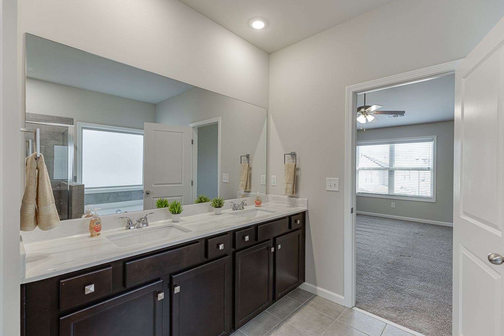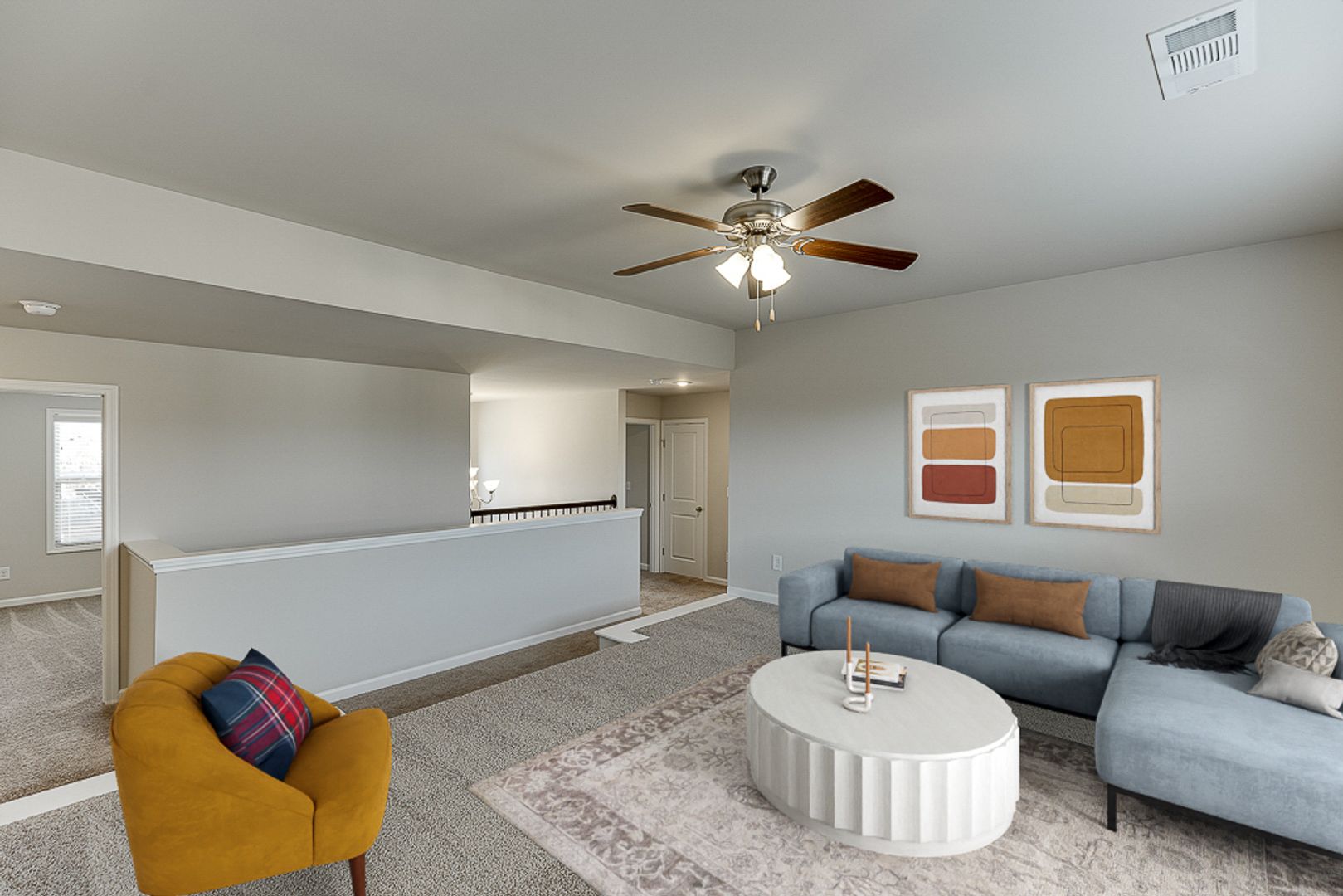 Upstairs, the oversized primary suite includes plush carpeting, generous closet space, and a private en suite bathroom with dual vanities. Secondary bedrooms are well-sized with large closets and abundant natural light. A versatile loft area offers the perfect bonus space for a home office, media room, or play area. A dedicated laundry room adds everyday convenience.