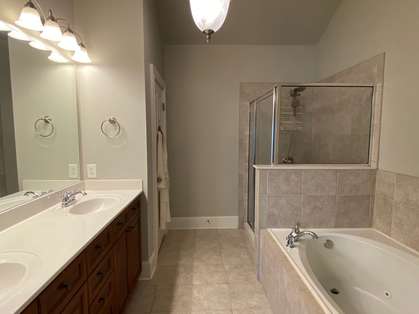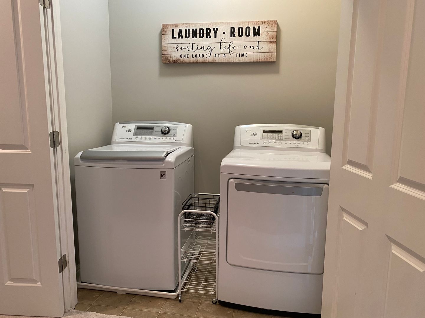 Additional highlights include a 2-car garage, washer and dryer included, and lawn care provided for added convenience. The primary bathroom features a separate soaking tub and shower, creating a spa-like retreat at home.