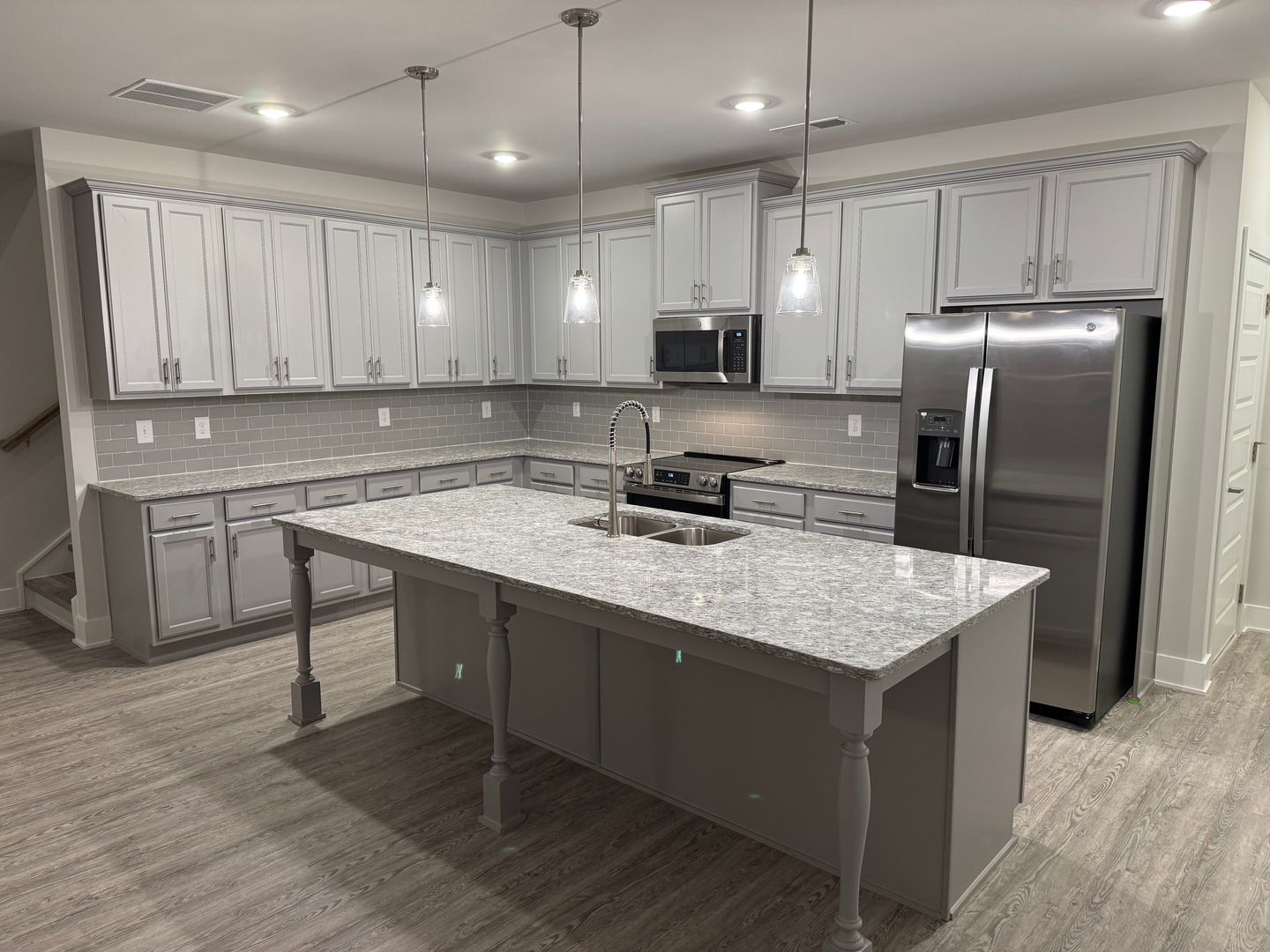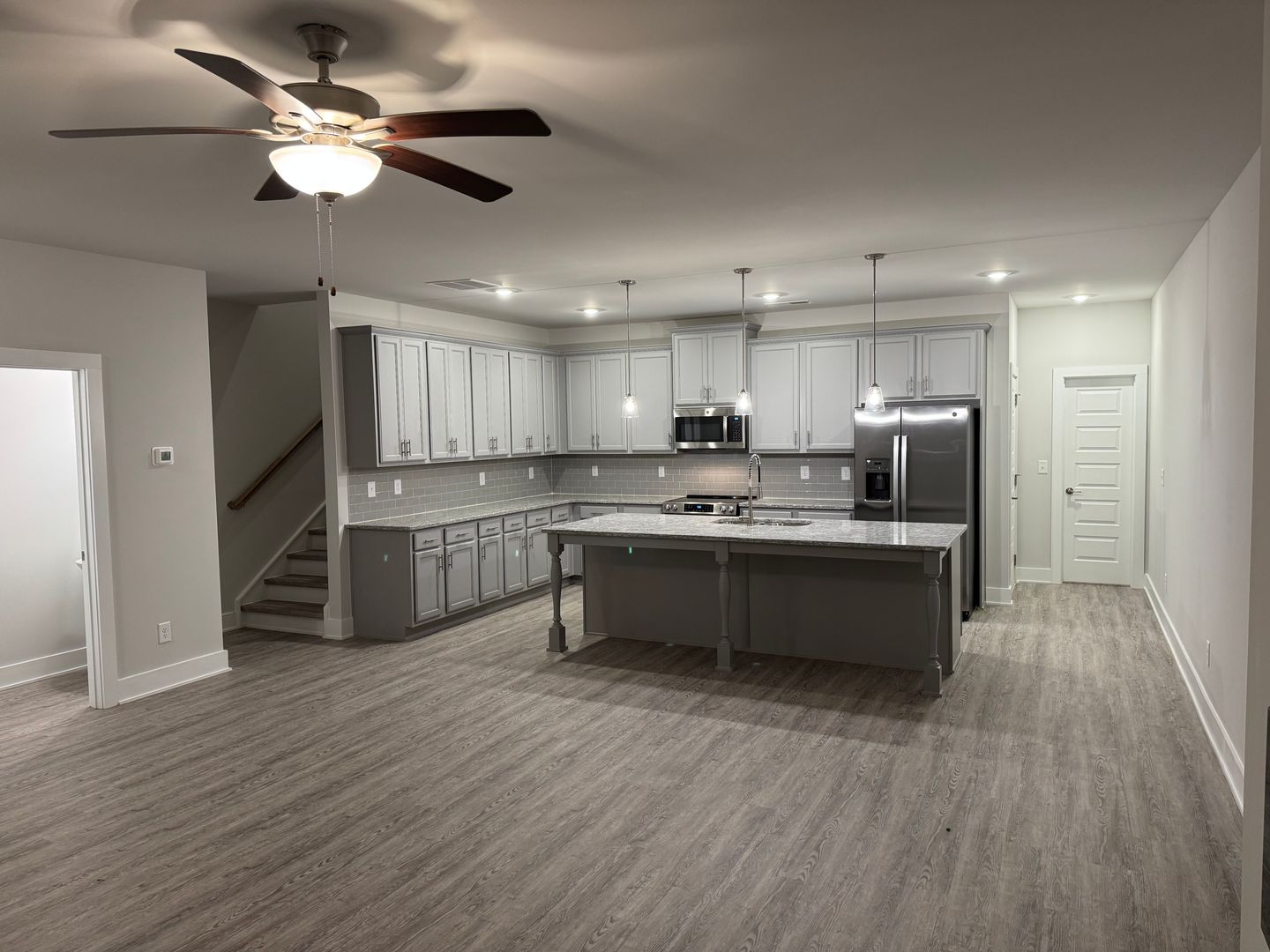 The kitchen features stainless-steel appliances, a large island with pendant lighting, walk-in pantry, and ample counter space for all your needs. A washer and dryer are included upstairs for your convenience.